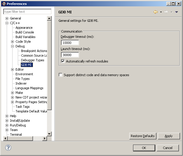In SDK, Window -> Preferences. select C/C++ -> Debug -> GDB MI. By default, the Debugger timeout is set to 10000 ms, whereas the Launch timeout is set to 30000 ms. Increasing the Debugger timeout to a value greater than, or equal to the Launch timeout helps resolve this issue.
