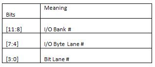 An I/O Byte Lane is a group of up to 12 I/Os in the same bank that share Phaser resources specifically sharing the PHASER_OUT, PHASER_IN, OUT_FIFO, and IN_FIFO. The byte lane of any given pin is indicated by the pin name, as shown in either in a PARTGEN-generated package file or FPGA_EDITOR. The "T*" indicates which of the four byte lanes in a bank that particular pin belongs to. For example, the following is from the package file for the XC7K325FFG800 device:
