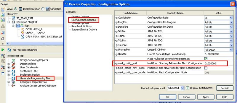 promgen -w -p mcs -spi -s 512 -c FF -o Multiboot -u 0 1.bit -u 30000 2.bit