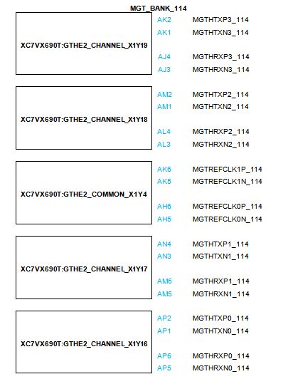 For the 7vx690tffg1926 from page 352 on bank 215, pin MGTHRXN3_215 should be U40.